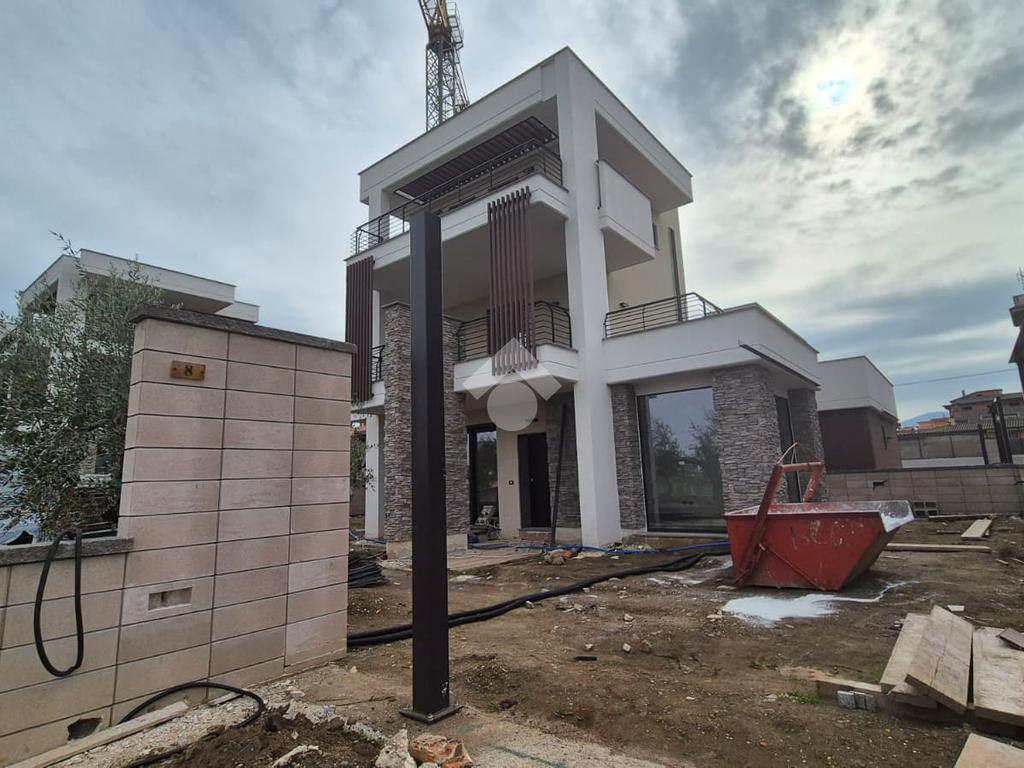 La villa si sviluppa su tre livelli (NON MANSARDATI) e si compone di un ampio salone con angolo cottura, tre bagni finestrati, quattro camere da letto, due spaziosi terrazzi e un comodo portico al piano terra. Completa la proprietà un giardino privato di 220 mq circa con accesso carrabile e posto auto interno.